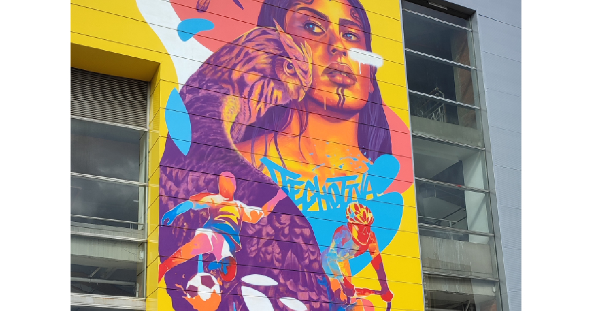 Él fue el encargado de pintar el mural en el Éxito de Las Américas, una obra donde la mujer, la naturaleza de los humedales y el amor por el ciclismo se inmortalizan y reflejan todo lo que la localidad de Kennedy y su comunidad ven y sienten día a día.